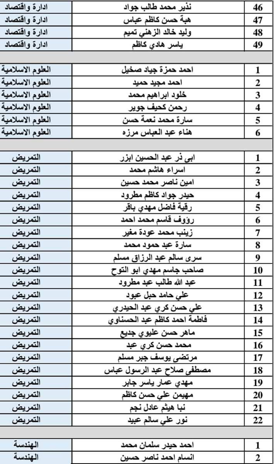 يتعين على الطلبة المدرجة أسماؤهم في القوائم أدناه مراجعة قسم الشؤون القانونية في جامعة وارث الأنبياء (عليه السلام) خلال مدة خمسة أيام من تاريخ الإعلان.