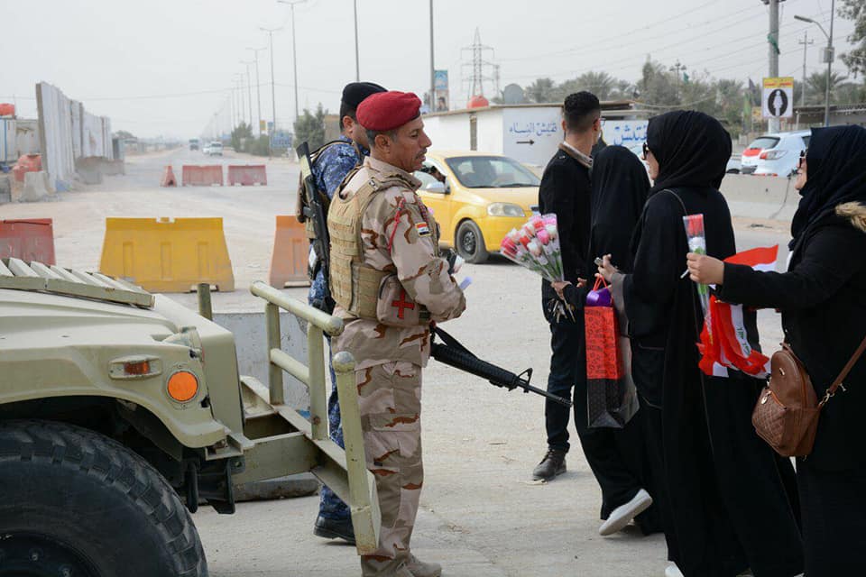 فريق الخوذة البيضاء الطلابي ...يشاركون الجيش العراقي فرحتهم ويوزعون الورود والاعلام العراقية .