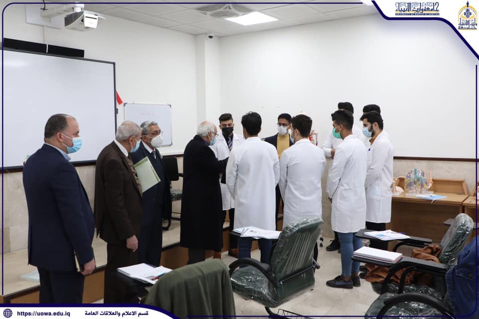 ضمن جولاته الميدانية المستمرة ولاجل الوقوف على احتياجاتها من أجهزة مختبرية حديثة وبنى تحتية متطورة ، أجرى السيد رئيس الجامعة الاستاذ الدكتور طالب حسن موسى برفقة السيد عميد الكلية الاستاذ الدكتور فالح البياتي جولة تفقدية في المختبرات العلمية لكلية الطب ،وجائت هذه الجولة لما لهذه الكلية من أهمية كبيرة خاصة في الجانب العملي ، مع تأكيد رئاسة الجامعة على عمادات الكليات الاخرى بضرورة الاهتمام بالجانب التطبيقي والعملي لما له من اثر في تخريج طلبة يتقنون تخصصهم نظرياً وعملياً .