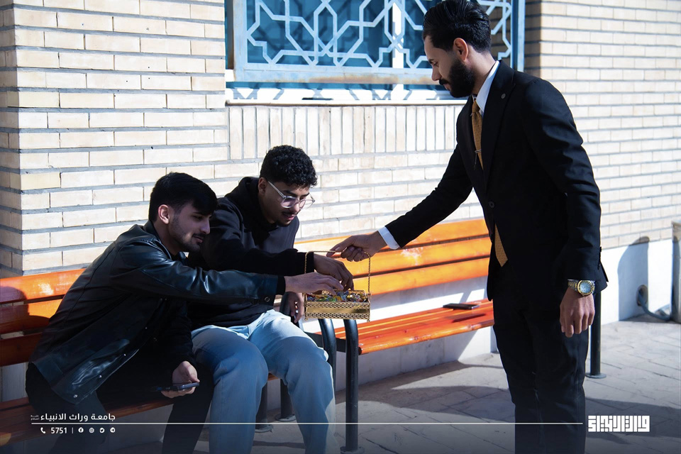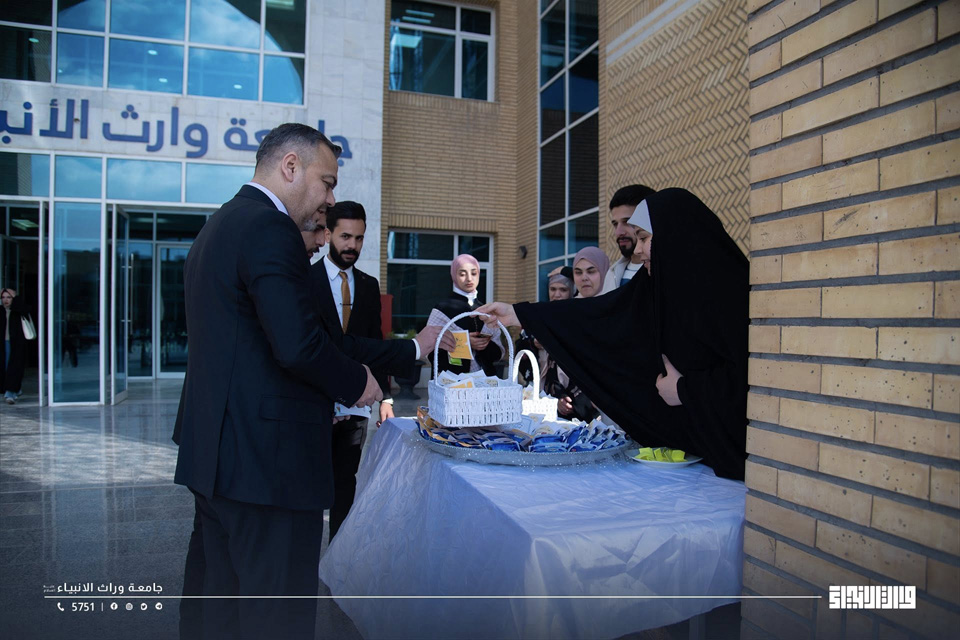 بمناسبة الذكرى العطرة لولادة أمير المؤمنين الإمام علي بن أبي طالب (عليه السلام)، بادر طلبة جامعة وارث الأنبياء (عليه السلام) إلى إحياء هذه المناسبة المباركة من خلال فعالية رمزية تمثلت بتوزيع الحلوى وتقديم نبذات وكلمات مختارة من سيرته العطرة داخل الحرم الجامعي، بهدف نشر القيم الإنسانية والأخلاقية التي جسّدها الإمام علي (ع) في العدالة، والعلم، وخدمة الإنسان.