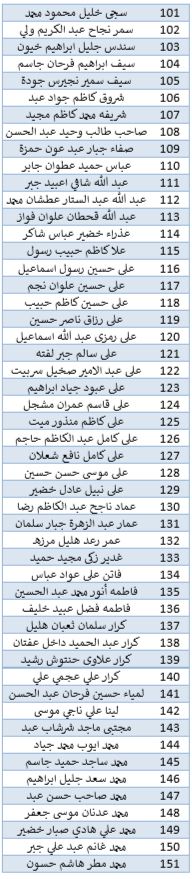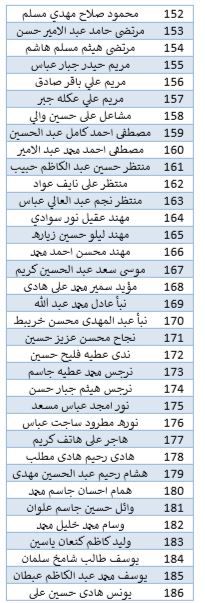 أسماء الطلبة المقبولين في كلية الادارة والاقتصاد قسم المحاسبة للدراسة الصباحي
