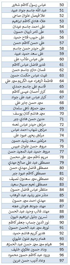 اسماء الطلبة المقبولين في كلية الادارة والاقتصاد قسم ادارة اعمال للدراسة الصباحي