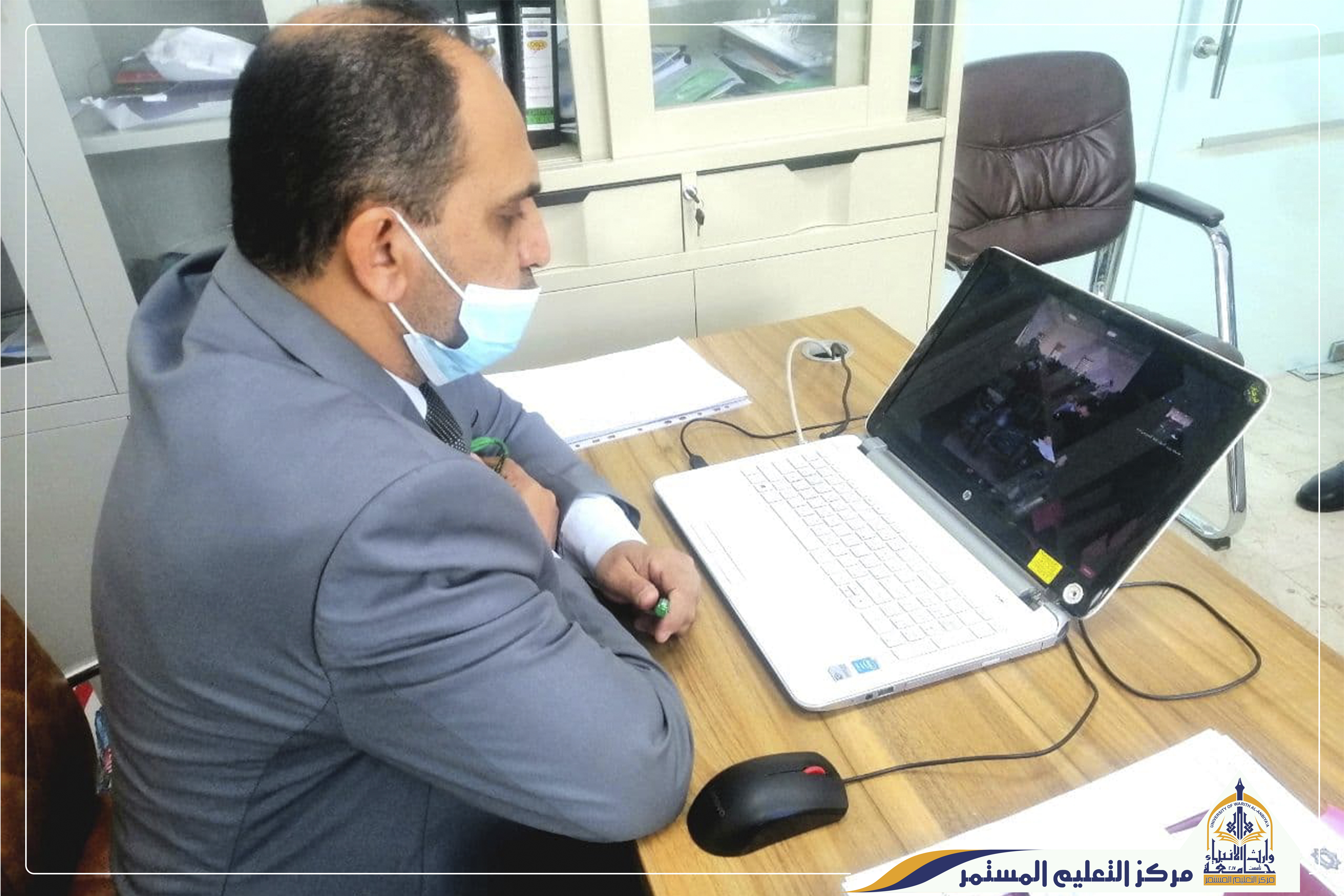 وضمن المتابعة الالكترونية مع الوزاره التي يؤديها مركز التعليم التعليم المستمر / شعبة التعليم الالكتروني ، تمت زيارة الجامعة من قبل الفريق الوزاري متمثلا بالدكتور(انور الجبوري) فقد زار الفريق الوزاري كلا من كلية التمريض وكلية الطب وكلية العلوم الاسلامية وقد اطلع على القاعات الدراسية والمختبرات في الكليات ضمن الزيارة اكد الفريق الوزاري على ضرورة ارتداء الكمامات والتباعد الاجتماعي كما قد تم سؤال التدريسيين في القاعات عن اعداد الحضور والغياب. وتاتي هذه الزيارة ضمن العديد من الزيارات التي يؤديها الفريق الوزاري للجامعة للاطلاع على سير عملية التعليم والاهتمام بالجانب الصحي . في الختام عبر الفريق الوزاري عن شكره للجامعة لما تقدمة للطلبة من اهتمام علمي وصحي.