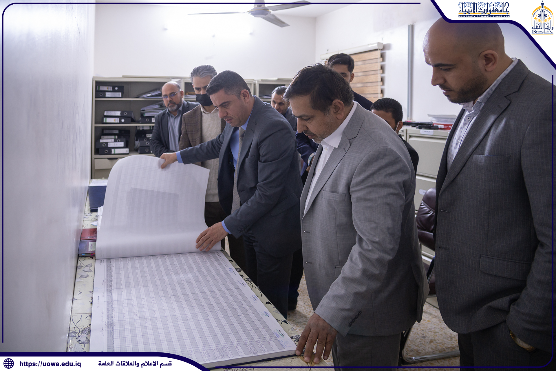 لغرض الإطلاع على سير الامتحانات الالكترونية والحضورية ،استقبلت السيد رئيس جامعة وارث الانبياء(عليه السلام) الاستاذ الدكتور ابراهيم الحياوي