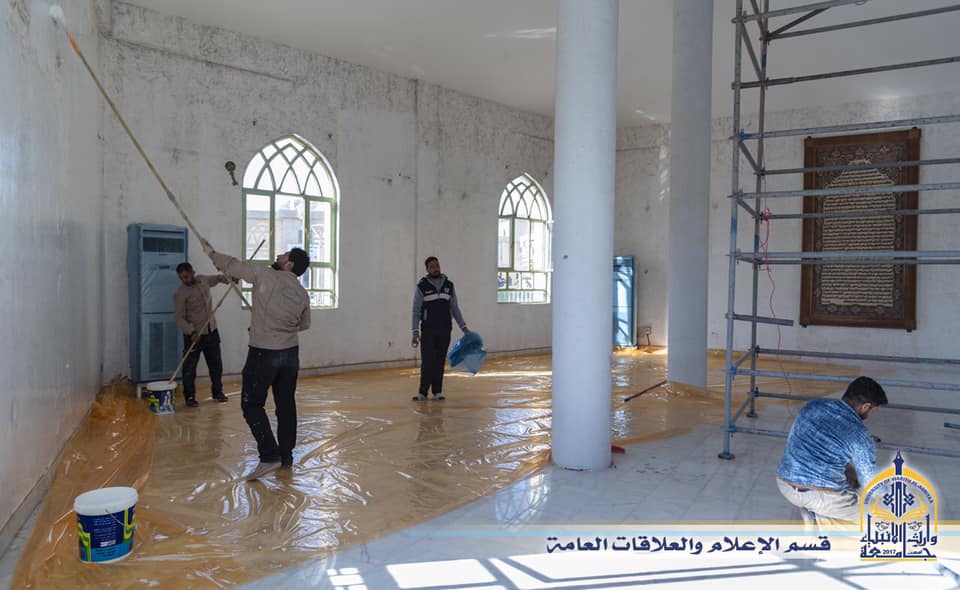 بتوجيه من السيد رئيس جامعة وارث الانبياء التابعة للعتبة الحسينية المقدسة ، تبنت عمادة كلية العلوم الاسلامية و بالتعاون مع قسم الصيانة في العتبة الحسينية المقدسة اعادة ترميم وتاهيل مسجد الزهراء (ع) في الجامعة ،وقال عميد كلية العلوم الإسلامية ان مراحل العمل ستكون على مرحلتين اولا طلاء الجدران من الداخل والخارج وإعادة ترميم القبة من الداخل والخارج أيضا والمرحلة الثانية تتمثل باعادة فرش وتجديد فرش الأرضية الخاصه بالمسجد