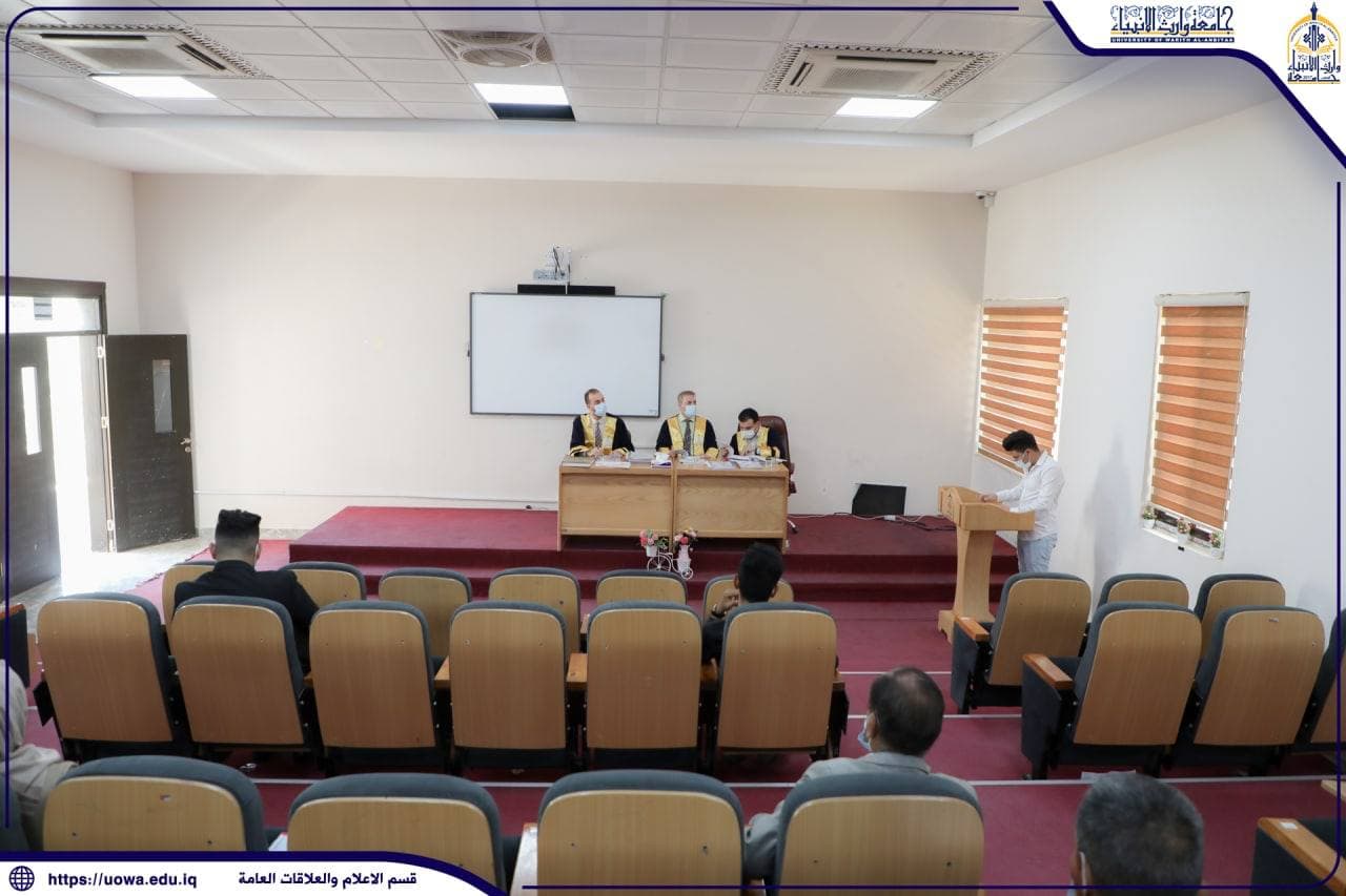 أنهت كلية القانون بتاريخ 2021/6/30 مناقشة بحوث التخرج التي جرت في قاعات الكلية من تاريخ 26/6/2021 بحضور السيد عميد الكلية أ.م.د عدنان هاشم جواد والسيد رئيس القسم أ.م.د علي صاحب جاسم .