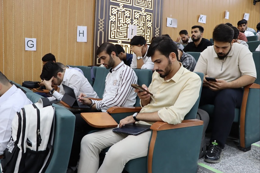 وتظهر الصور تفاعل الطلبة الجاد أثناء أداء الامتحانات الإلكترونية وانسيابية سير العملية الامتحانية كلية الطب جامعة وارث الأنبياء عليه السلام