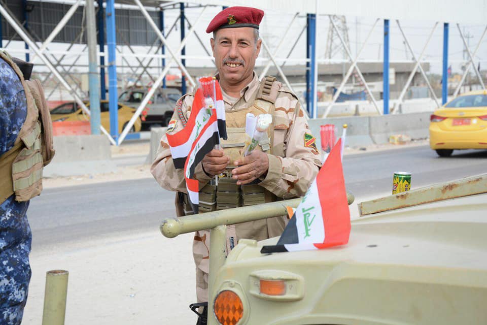 فريق الخوذة البيضاء الطلابي ...يشاركون الجيش العراقي فرحتهم ويوزعون الورود والاعلام العراقية .