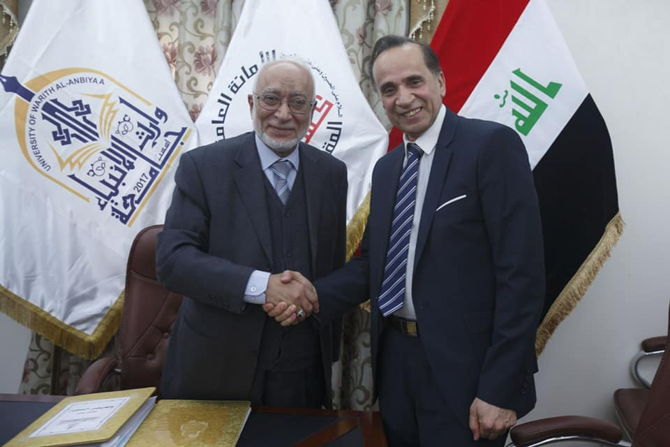 تستعد جامعة وارث الانبياء لفتح افاق التعاون والتفاهم مع الجامعة الاوربية حيث اجتمع رئيس جامعة وارث الانبياء الاستاذ الدكتور طالب حسن الموسوي وعمداء الكليات بممثل الجامعة الاوربية الاستاذ الدكتور محمد حسين الانباري في مقر الجامعة بكربلاء ليطلعهم الضيف على نظام الدراسة في كليات الجامعة الاوربية ومزاياها الخاصة ينتهي المجتمعون الى ضرورة ايجاد علاقة علمية ثقافية بحثية بين الجامعتين من خلال العمل على اعداد مذكرة تفاهم اولية بعد ان يرسل الضيف مسودة المذكرة للنظر بها من قبل جامعة الوارث يذكر ان الجامعة الاوربية في مدريد من الجامعات العريقة وتتكون من تخصصات انسانية وعلمية ولها فروع في اكثر من ٣٦ دولة وعدد طلابها اكثر من ٦٥ الف طالب من مختلف الجنسيات
