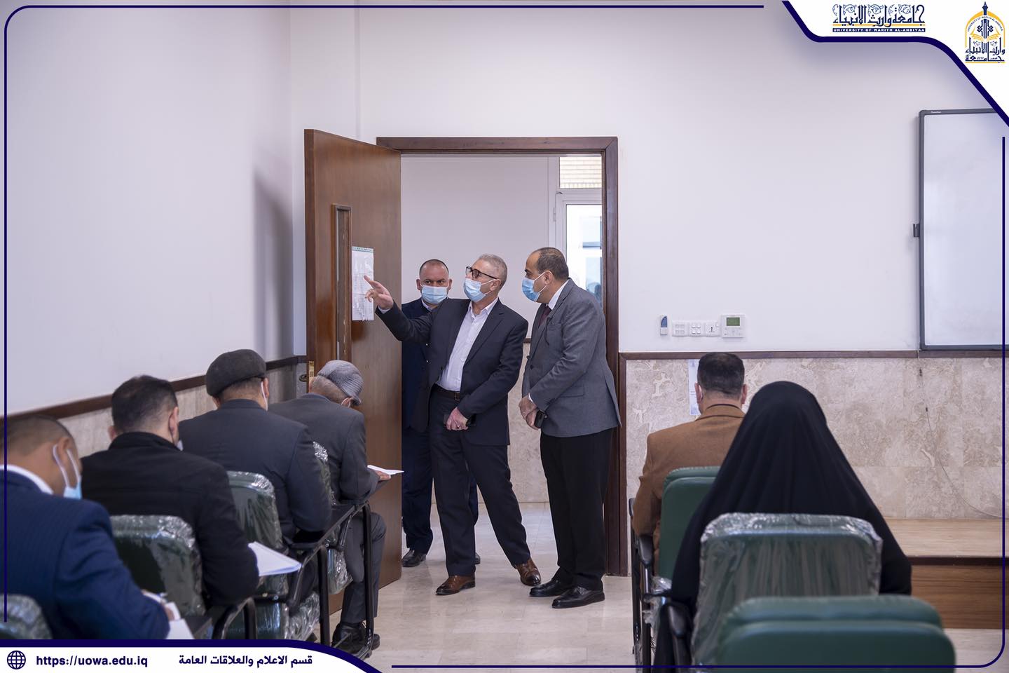 أجرى السيد رئيس الجامعة الأستاذ الدكتور إبراهيم الحياوي برفقة السيد المساعد العلمي الأستاذ الدكتور عباس الدعمي وبعض السادة رؤساء الأقسام، جولة تفقدية لكليات وأقسام الجامعة لمتابعة الاستعدادات والتحضيرات الجارية للامتحانات ومتابعة اللجان الامتحانية، والوقوف على احتياجاتهم مع التأكيد على الالتزام بالإجراءات الوقائية.إذ اكد السيد رئيس الجامعة في لقائه مع السادة عمداء الكليات على ضرورة الحفاظ على المسيرة التعليمة والأمانة العلمية في إيصال المواد الدراسية الى الطلبة لان جامعة وارث الأنبياء(عليه السلام) تأسست لا لتكون مجرد رقم بين الجامعات الأخرى بل لخدمة المسيرة العلمية في بلدنا العزيز، وهذا ما دأبت عليه الجهة الراعية لها وهي العتبة الحسينية المقدسة التي كانت ومازالت داعمة للنهوض بالعملية التعليمية في البلد.