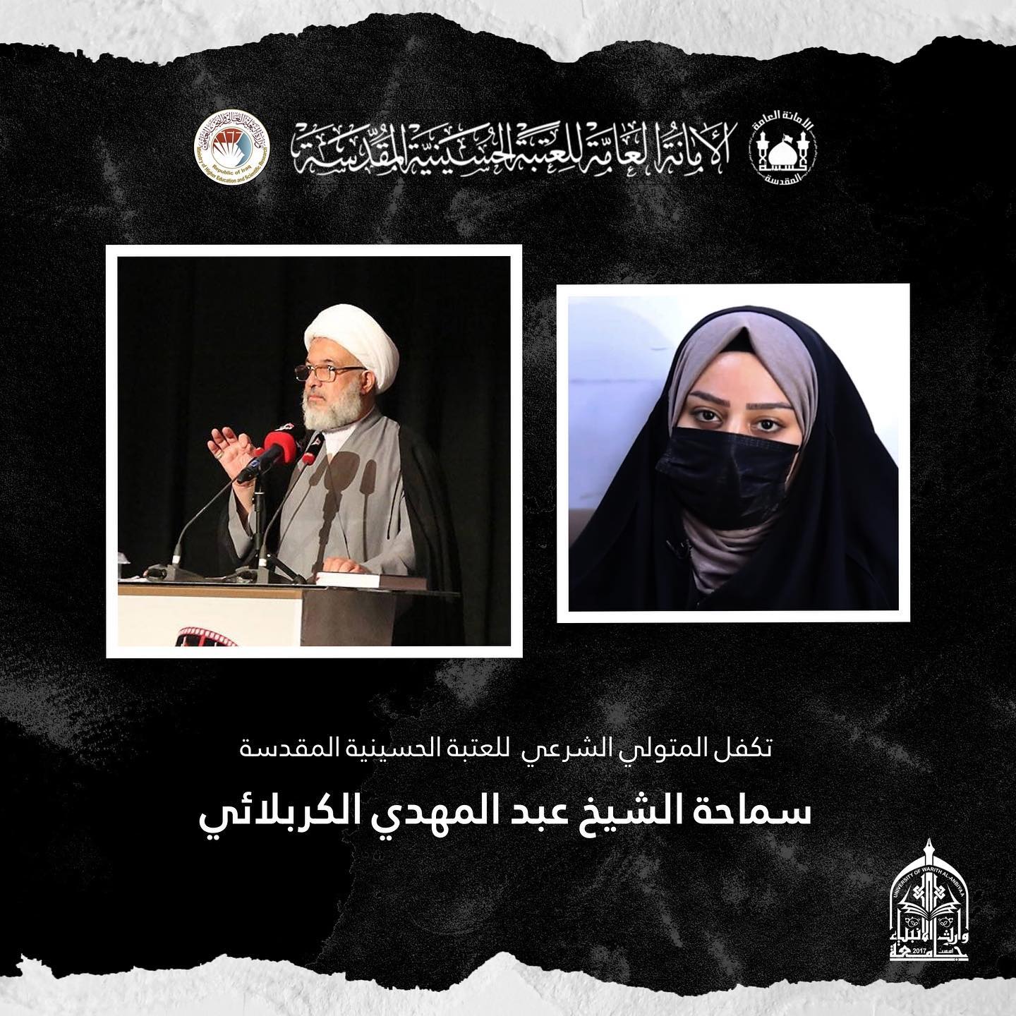 منحة مجانية من سماحة المتولي الشرعي للعتبة الحسينية المقدسة الشيخ عبد المهدي الكربلائي (دام عزه) للطالبة إيلاف حيدر لقبولها في كلية الطب جامعة وارث الأنبياء (ع)بعد عرض موضوع الطالبة من قبل الدكتور طلال فائق الكمالي على سماحة الشيخ عبد المهدي الكربلائي، تفاعل سماحته مع وضع الطالبة الاستثنائي ووافق على منحها منحة مجانية في كلية الطب جامعة وارث الأنبياء للسنوات الدراسية كافة.وهو جزء من الرسالة الإنسانية التي تؤديها العتبة الحسينية، وتحرص على تطبيقها جامعة وارث الأنبياء.