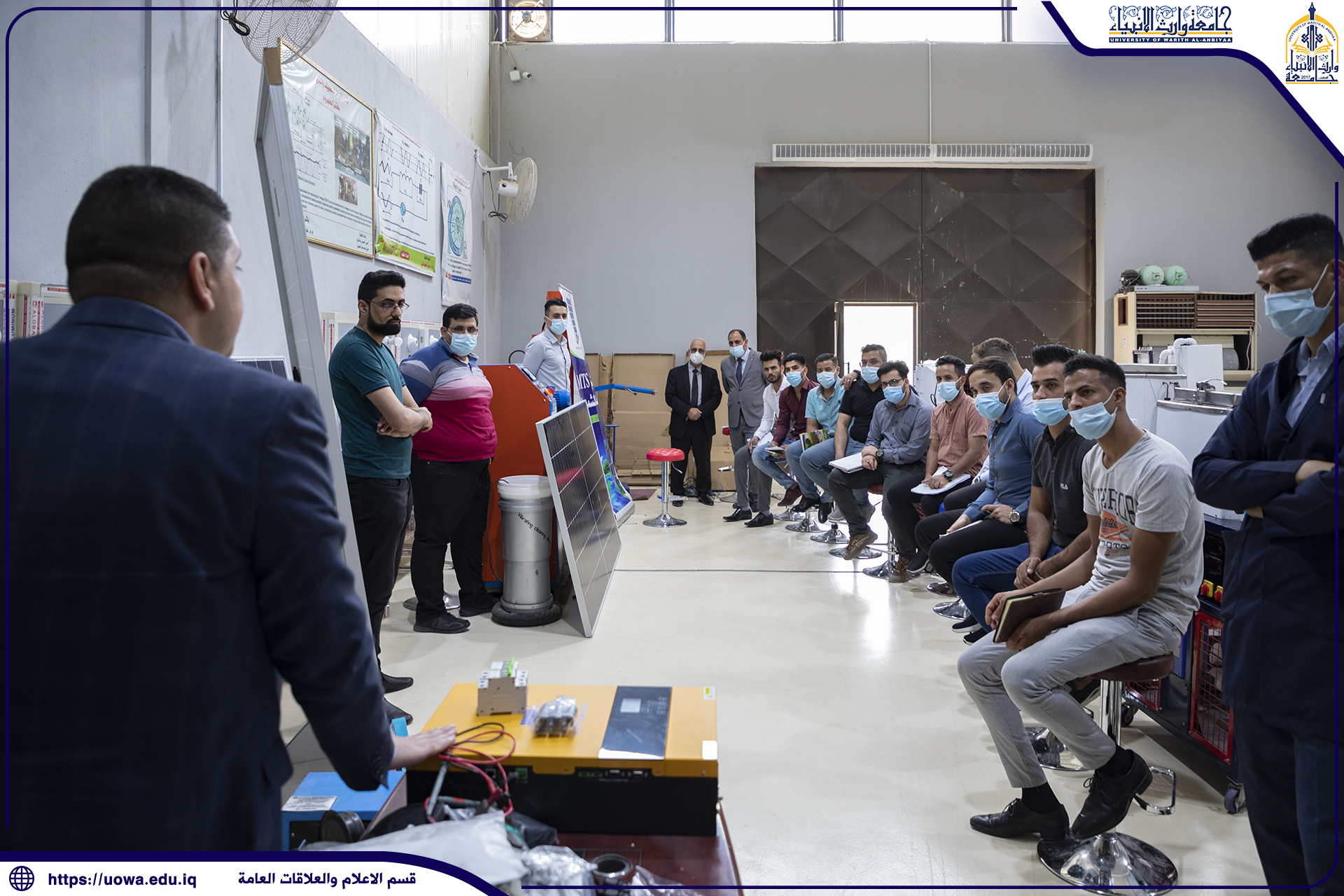 محاضرة عملية لطلبة قسم هندسة تقنيات التكييف والتبريد في جامعة وارث الانبياء(عليه السلام) عن الطاقة الشمسية