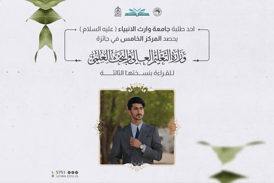 شاركت جامعة وارث الأنبياء (عليه السلام) في مسابقة النور القرآنية الدولية الجامعية التي نظّمتها وزارة التعليم العالي والبحث العلمي، بمشاركة واسعة من (53) جامعة عراقية و**(6) جامعات أجنبية** من مختلف دول العالم، واستضافتها جامعة العميد.