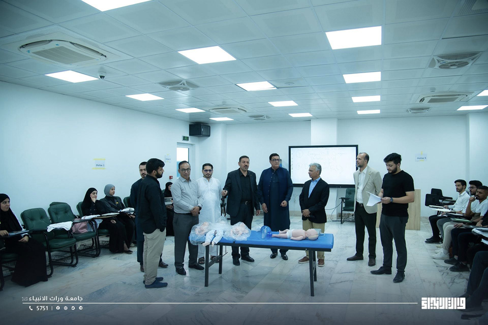 University of Warith Al-Anbiyaa (peace be upon him) welcomed an official delegation from the Rahmat Lil Aalameen Authority of Pakistan, received by the Assistant President of the University, Prof. Dr. Naufel Al-Araji, and the Dean of the College of Medicine, Prof. Dr. Ali Al-Ghizzi. The visit aimed to explore the university’s academic experiences and its modern infrastructure.