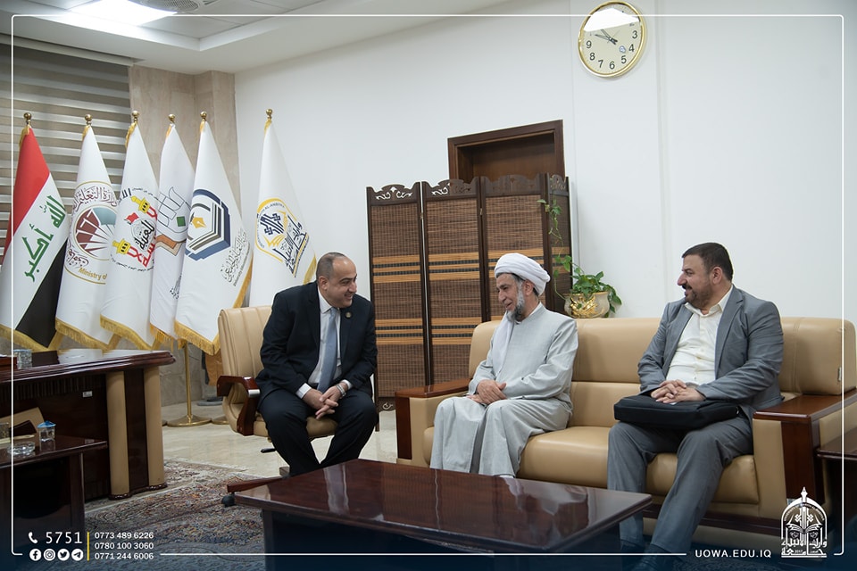 The President of the University of Warith Al-Anbiyaa, Dr. Ibrahim Saeed Al-Hayyawi, received a delegation composed of several faculty members from the College of Islamic Sciences at the University of Sulaymaniyah.