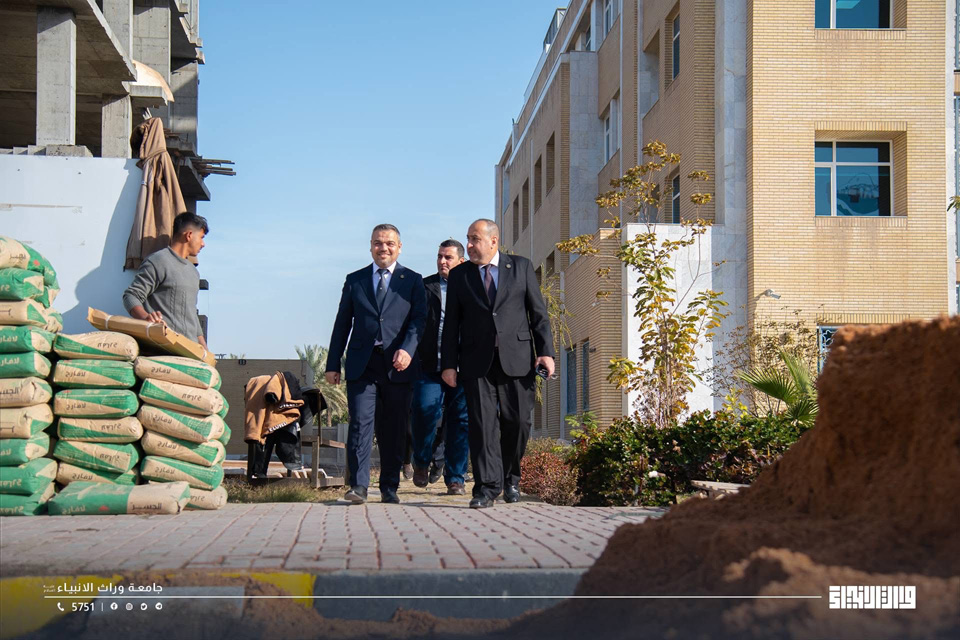 The President of Warith Al-Anbiyaa University, Professor Dr Ibrahim Saeed Al-Hayyawi, accompanied by the Assistant President for Academic Affairs, Professor Dr Waqed Al-Moussawi, conducted a field visit across the University campus to review the progress of the educational process and the academic environment experienced by students. During the visit, he listened to students’ observations and identified their needs.