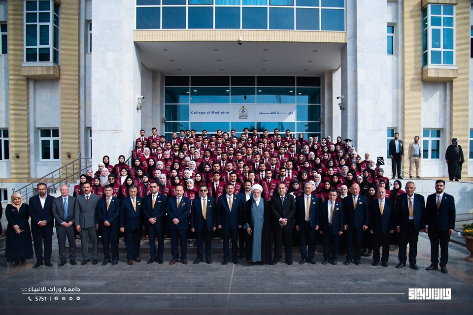 University of Warith Al-Anbiyaa welcomed the Representative of the Supreme Religious Authority, His Eminence Sheikh Abdul-Mahdi Al-Karbalaei, during an official visit in which he met with graduates of the College of Medicine.