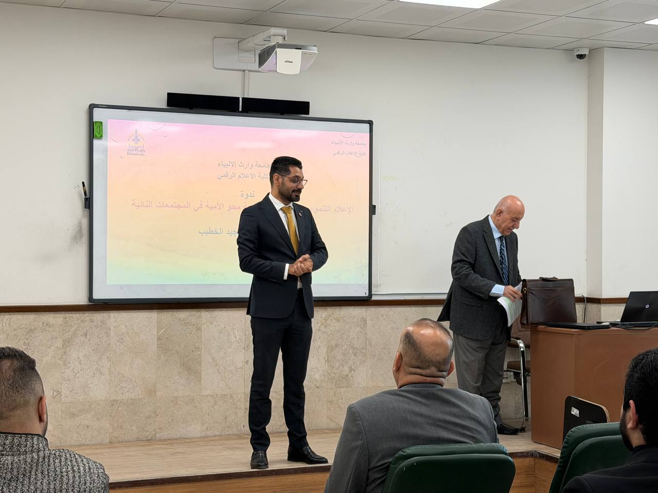 The College of Law at Warith Al-Anbiyaa University (peace be upon him), in cooperation with the College of Media / Department of Digital Media, organized a scientific seminar titled: