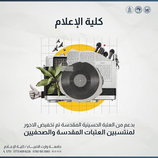The University of Heir al-Anbiya (peace be upon him) affiliated with the Holy Imam Hussain Shrine announced the establishment of the College of Media, which was included in the student guide for the current academic year 2023-2024, indicating that the college included the departments of digital media and public relations.