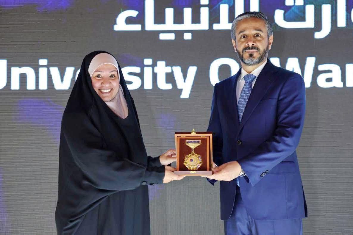 The award was received by Prof. Dr. Noor Mahdi Al-Saadi, Assistant Dean of the College of Islamic Sciences, as a testament to the advanced position achieved by the University of Warith Al-Anbiyaa (PBUH) on its path toward national leadership and regional and global influence.