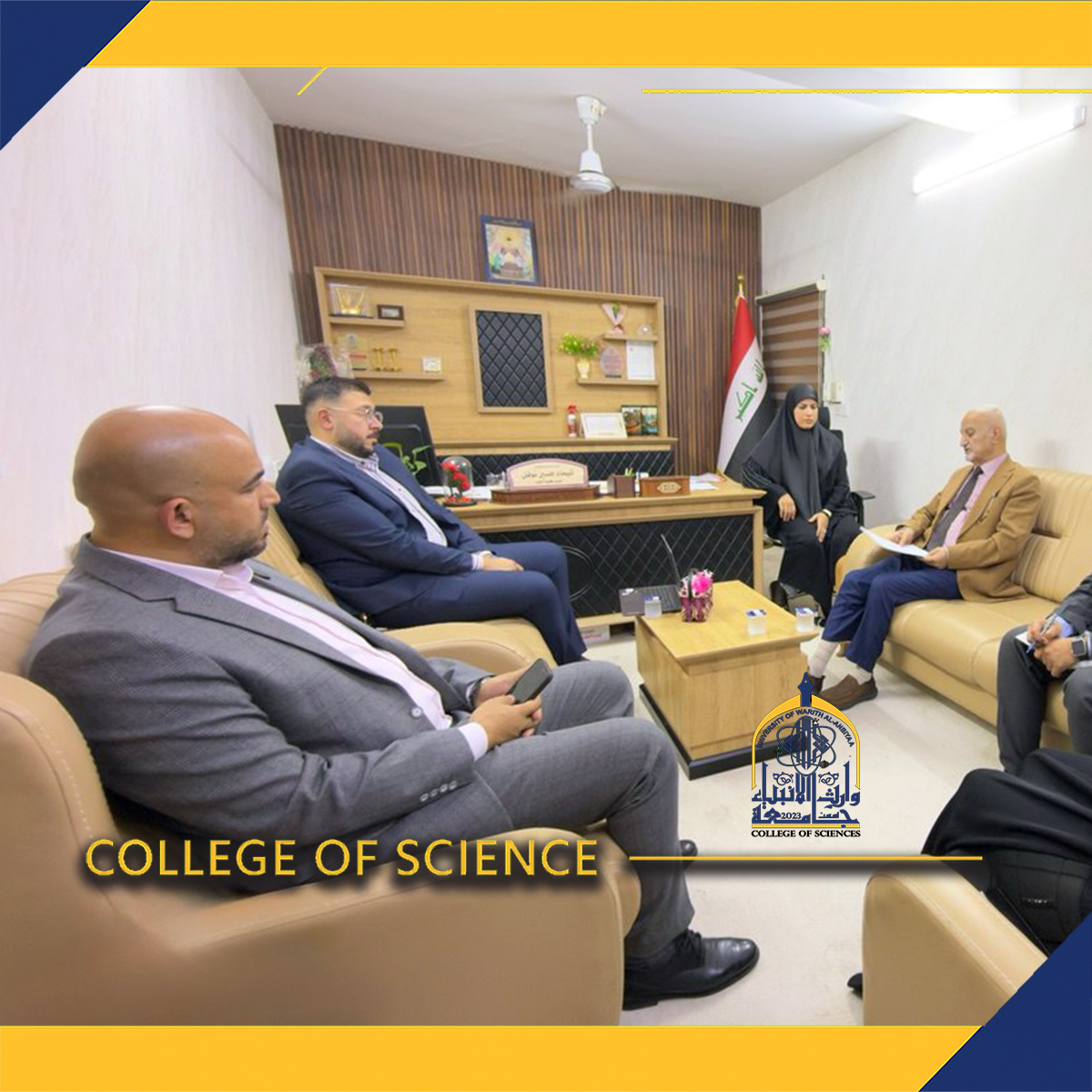 The College of Science was honored by a blessed visit from the Assistant President of the University of Warith Al-Anbiyaa (peace be upon him), Professor Dr. Noufal Al-Aaraji. He was received by the Dean of the College, Assistant Professor Dr. Shaimaa Hussein Noufal, and the Head of the Information Technology Department, Assistant Professor Dr. Haider Al-Ghanimi.