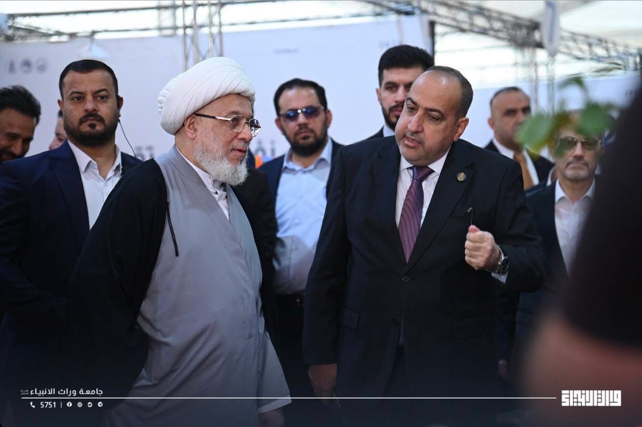 His Eminence Sheikh Abdul Mahdi Al-Karbalai, visited Warith Al-Anbiyaa University today. He was received by the University President, Professor Dr. Ibrahim Saeed Al-Hayawi, to conduct an inspection tour and review the ongoing expansion and development projects within the university.