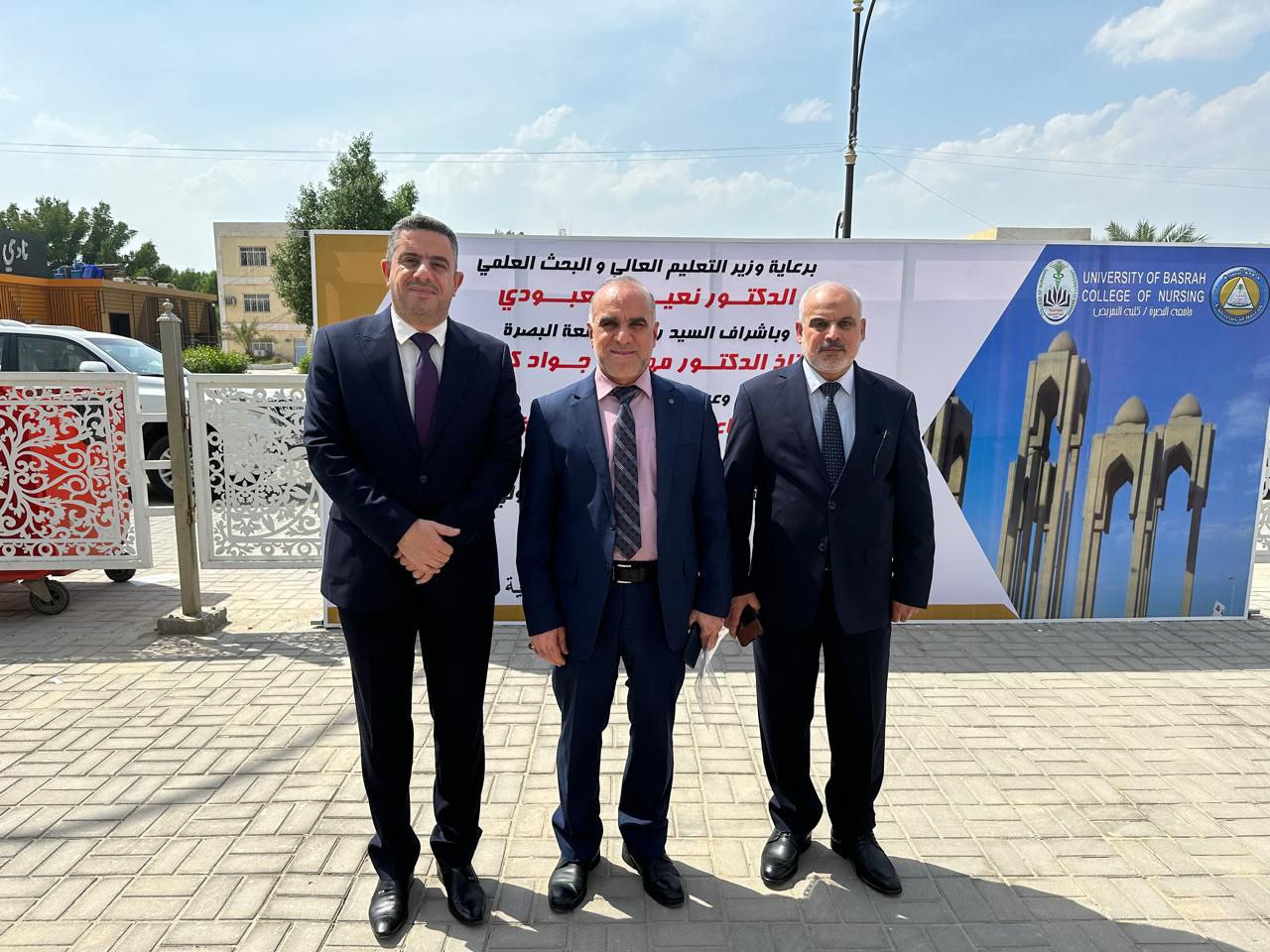 Participation of the Dean of the College of Nursing, Prof. Dr. (Mortada Ghanem Adai Al-Jubouri) and the faculty member, Assistant Professor Dr. (Dhafer Amin Jabbar Al-Moussawi) in the College of Nursing in the International Scientific Nursing Conference held by the College of Nursing, University of Basra, which contributes to developing the scientific and professional competencies of its students and academics at the university.